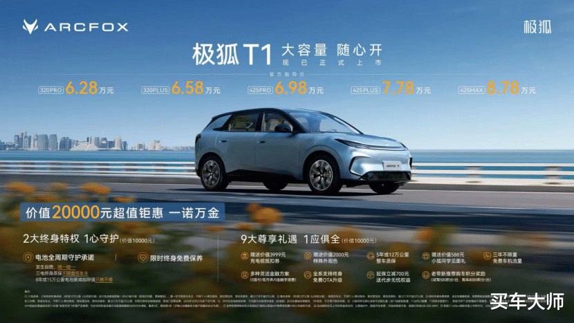 售价6.28万元-8.78万元,还可享3999元充电桩抵扣券、价值2000元特殊漆色券、588元小狐同学见面礼、三年不限流量免费车机流量、5年或12万公里整车质保、全系支持终身免费OTA升级、延保立减700元送代步无忧权益、多种灵活金融方案、老带新购车积分奖励等九大尊享礼遇,关键是还有首任车主终身免费保养和电池全周期守护这样的终身权益。